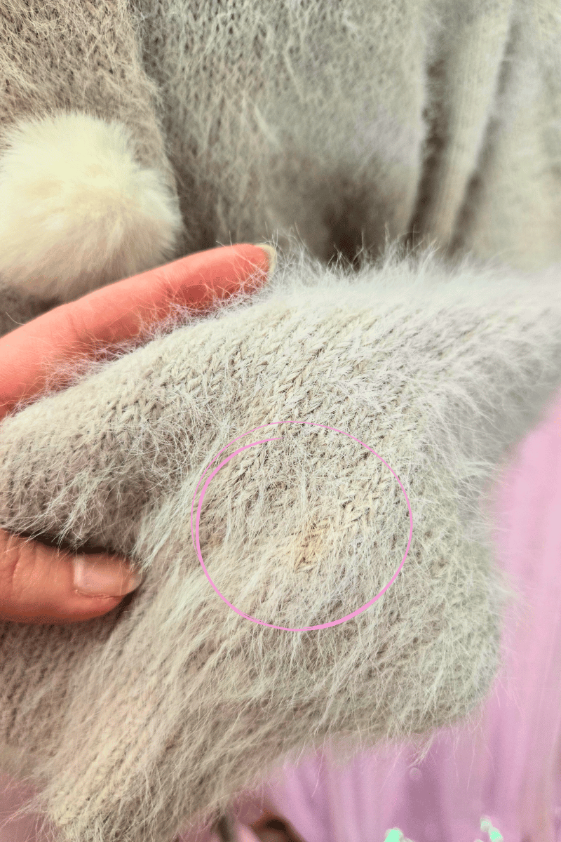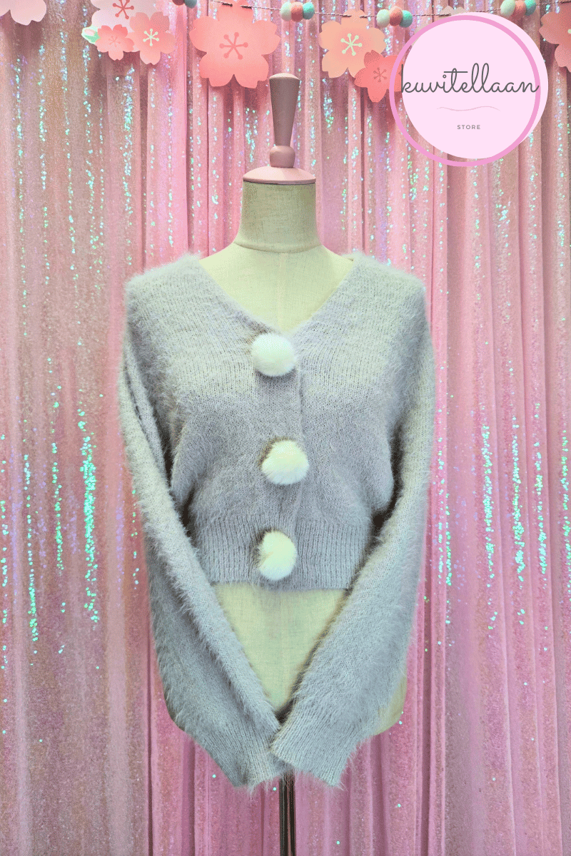 Evelyn pehmeä harmaa-violetti neuletakki pompomeilla (käytetty)